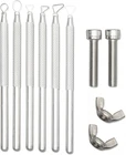 Product Description: KATAI Pottery Bat Set with Sculpting Tool Kit and Bat Pins Pottery Wheel Bats Pottery wheel bats are extremely convenient tools to have in a ceramics studio. They are flat discs that attach to a pottery wheel head and are available in a variety of sizes and shapes. They are made from a variety of different materials such as; plastic, wood and plaster. Typically pottery heads have two holes that fit snugly onto a pair of bat pins that are inserted into your wheel head. Once it is attached to the wheel head, then you can work directly on the bat. You can then lift it off your wheel head, with the thrown pot, without disrupting your work. Easy to Use By drying your pots on your square inserts you are saving precious space in your studio. To use your bat system simply lift the inner bats from the insert tab in the outer bat by using your fingers or a flat potter's tool. Heavy Duty Materials Your pottery wheel bats help protect your work and your valuable equipment. The bat and the pot can be easily removed from the potter's wheel head so there is no need to directly handle your creations. Your inserts are made out of durable masonite and the outer bat is made from a very strong and water/warp-resistant exterior grade wood material. Do not leave your outer bat or inserts sitting in water. Just gently clean and dry. Sculpting Tool Kit and Bat Pins Included in this deal is a durable and easy-to-clean 6 piece aluminium sculpting tool kit. This lightweight kit works well on various modelling materials including clay and wax. Also included is a pair of bat pins that work on most brand wheels. What is Included? 1 x Round Outer Bat 6 x Square Inner Bats 6 x Sculpting Tool Kit 2 x Bat Pins Your space saving bat system for a potter's wheel has a bat adapter with removable inserts. This bat set fits standard wheel heads. The pin holes are spaced 10" apart on center. Your pottery bat insert system is made from premium moisture-resistant wood. Included in this offer is a 6-piece aluminium sculpting tool kit 9 (12 cm - 13 cm) and a set of bat pins (1 1/4" long). Your KATAI pottery bat set comes with a 12 inch round outer bat and a set of six 7 inch square inner bats.