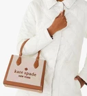 KATE SPADE ELLIE CANVAS SMALL TOTE / CROSSBODY WARM GINGER KF509 NWT $359 NWT $359 KATE SPADE NEW YORK ELLIE CANVAS SMALL TOTE / CROSSBODY WARM GINGER STYLE: KF509 Click images to enlarge Description NWT $359 KATE SPADE NEW YORK ELLIE CANVAS SMALL TOTE tote bag with magnetic snap closure interior back zip pocket embroidered logo on front dual flat handles with 5" drop removable and adjustable crossbody strap two way script logo lining protective feet on bottom SIZE 9.36"w (bottom), 8.88"w (top) x 8.2"h x 4.5"d 5" drop from dual handles adjustable crossbody strap ***please check measurements as photos may not truly represent actual size Color: WARM GINGER (200) R5Q Manufacturer Style No. KF509 due to low margins item ships unstuffed, loosely folded but will be protected. we save on shipping you save on price. Payment Please complete Ebay checkout for payment address within 3 days of auction end. We accept PayPal. Please include your auction item/number with payment. Shipping We ship A.S.A.P. Happy shopping, Karen & Martin Terms of Sale An item can be returned as long as you contact us within three days of receipt and the return postmark is dated within 14 days of the delivery confirmation of the item. The original tags must still be attached and the item must not be used or worn. We do not refund shipping and handling fees and we do not pay for the return shipping. If shipping was free we will deduct our cost of shipping the item to you. A 20% restocking fee will be subtracted from the purchase price of the item. About Us We are committed to bringing the finest styles and quality items to our customers. Our dedication to customer service and customer satisfaction is what we are all about. Please note: We sell from a PET FREE and SMOKE FREE ENVIRONMENT. Contact Us We do our best to accurately describe each item. Please check our other auctions for more great designer clothing and merchandise. We ship a.s.a.p. after receipt of payment. Please e-mail us with any questions. Get images that make Supersized seem small. Showcase your items with Auctiva's Listing Templates! THE simple solution for eBay sellers. Track Page Views With Auctiva's Counter