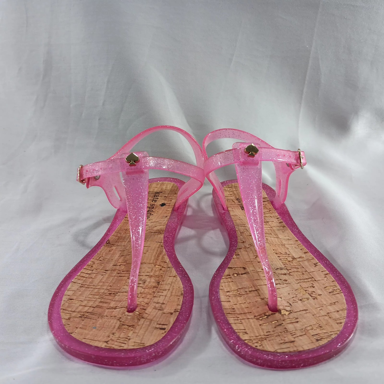 KATE SPADE New York Pink T Strap Glitter Jelly Thong Sandals Size 7B Festival Boho Designer Beach. New without a box and in excellent condition. Please see the photos attached for details.