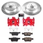 Martin's Auto Parts PRODUCT INFORMATION KC7417 Powerstop 2-Wheel Set Brake Disc and Caliper Kits Rear for Continental Description / Notes: Terms of Use Powerstop Brake Disc and Caliper Kit -- POWERSTOP Z23 EVOLUTION SPORT BRAKE DISC AND CALIPER KIT With PowerStop’s Z23 Evolution Sport brake disc and caliper kit, PowerStop combines its cherry red powder-coated Performance Brake Calipers and Z23 Evolution Sport carbon ceramic brake pads into a package that promises high performance braking without the noise or grimy dust that come with factory parts when subjected to aggressive driving conditions. PowerStop Extreme Performance Brake Systems, a team with over 200 years of combined automotive experience, is a world-renowned leader in brake technology and product development. Replacement for factory calipers and discs Meets factory specifications Calipers are finished in a cherry red powder-coat Kit includes pin bushings where applicable Calipers come with premium boots/seals and are compatible with custom or factory wheels PowerStop’s Z23 Evolution Sport pads offer a high-carbon ceramic formula that gets rid of dust and particles more efficiently and dissipates heat more quickly Silver zinc-plated discs resist rust more than other competitive brands Perfect for track or street enthusiasts as well as commuters and off-road folks Notes: Location : Rear Series: Z23 Evolution Sport Series Type: Loaded (Caliper, Hardware & Pads) Anticipated Ship Out Time: 1-2 Business Days Quantity Sold: 2-Wheel Set Color/Finish: Red Powdercoat Caliper Recommended Use: Performance Replacement Number of Lugs: 5 Lugs Disc Design: Cross-drilled and Slotted Pad Material: Carbon Fiber Ceramic Notes: Kit components - (1) Brake Caliper and (1) Brake Disc and Pad Kit Prop 65 Warning: WARNING: This product can expose you to chemical which is known to the State of California to cause cancer and birth defects or other reproductive harm. For more information go to www.P65Warnings.ca.gov. Location: Rear Compatible with the following vehicles: Ford 2015-2018 Edge Sport 2020 Edge ST-Line 2015-2020 Edge (submodel: SE, SEL, Titanium) 2017-2019 Fusion Sport 2019-2020 Police Responder Hybrid Base Lincoln 2019 Continental 80th Anniversary Coach Door Edition 2020 Continental Coach Door Edition 2017-2018 Continental Premiere 2017-2019 Continental Select 2017-2020 Continental (submodel: Black Label, Reserve) 2019-2020 Continental (submodel: Base, Livery)