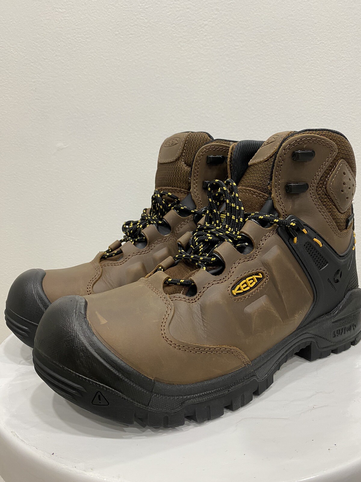 Step up your workwear game with these KEEN Dry Waterproof Utility Men's Boots. Featuring a waterproof leather upper and KEEN.DRY breathable membrane, these boots are perfect for any season. The oil and slip-resistant non-marking rubber outsole, TPU shank for midfoot support, and ASTM F1677-96 MARK II Non-Slip Testing Standards ensure safety and comfort all day long. Designed with locking metal hooks and lacing eyelets, these boots have a customizable fit for added support. The lining with hydrophobic/hydrophilic 2-zone comfort technology and removable, metatomical dual-density EVA footbed provide ultimate comfort and natural odor control with Cleansport NXT™. These boots are ASTM F2412-18 and F2413-18 M I/75 C/75 EH standard compliant, making them a reliable and durable option for any job. Condition of the item is New without box. Shipped asap by USPS Priority Mail.