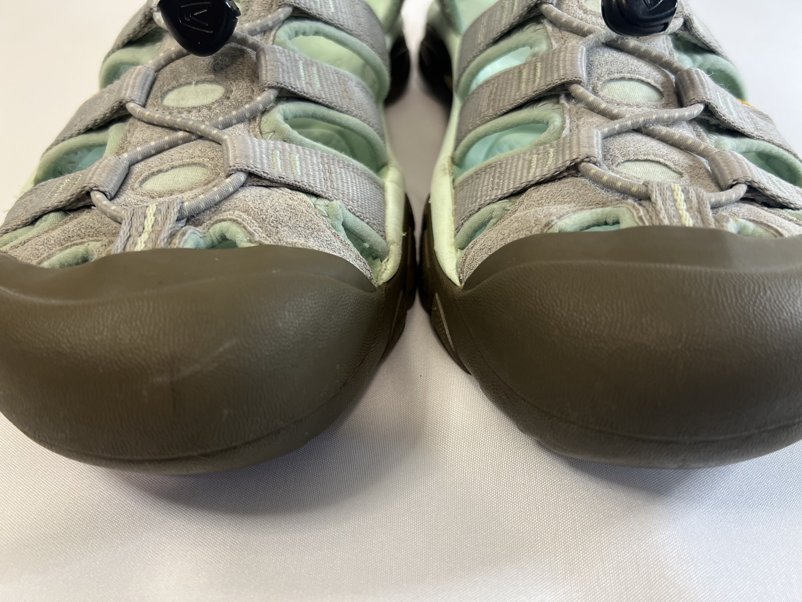 Women's Keen Newport H2 Waterproof Sandals – Size 10 – Grey & Mint Green Up for sale is a gently used pair of women’s Keen Newport H2 sandals , perfect for hiking, walking, or water adventures. Details: Size: Women’s 10 Color: Grey and mint green with darker green covered toe Condition: Gently used, worn only a couple of times; very minimal signs of wear Notes: A few very light scuffs on the front covered toe area, otherwise excellent condition These Keen Newport H2 sandals are known for their comfort, durability, and waterproof performance – ideal for outdoor activities or casual wear. Photos included to show the sandals from all angles and any minor wear.