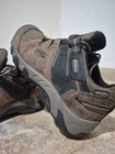 No signs of significant wear. In good condition Tackle the trails with confidence in the KEEN Steens Vent Brown Leather Trail Hiking Shoes. Designed for the outdoor enthusiast, these size 7 men's sneakers feature a waterproof membrane that keeps your feet dry in wet conditions, while the breathable leather upper ensures comfort on long hikes. The shoes are constructed with a low top shaft for a full range of motion, and the durable design boasts a cross theme that reflects your adventurous spirit. With a snug medium width and the reliable performance of the KEEN Targhee product line, these sneakers are a solid choice for any hiking adventure.