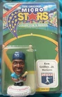 The Ken Griffey Jr. Seattle Mariners Micro Stars Collector's Series Figurine from 1995 is a multicolor vinyl and plastic figurine measuring 3 inches in height. This vintage MLB collectible is part of the 1995 Collectors Edition series and features Ken Griffey Jr. It is a boxed item suitable for ages 5-7, representing the baseball theme and sport. It is an original licensed reproduction made in the 1990s.