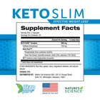 Increases Metabolism* Provides Good Fats* *Boosts Energy* Reduces Excess Water* Reduces Appetite In a study, participants who consumed a key ingredient in the KETO SLIM TM formula twice daily lost an average of 30.5 pounds of weight vs. participants who only dieted (10.1 lbs.) in just 13 weeks. Both groups consumed a reduced calorie diet of 1350 Calories per day for women and 1850 Calories per day for men. Nature’s Science KETO SLIM is the only weight-loss designed specifically for your ketogenic diet and help you lose up to 30lbs!*