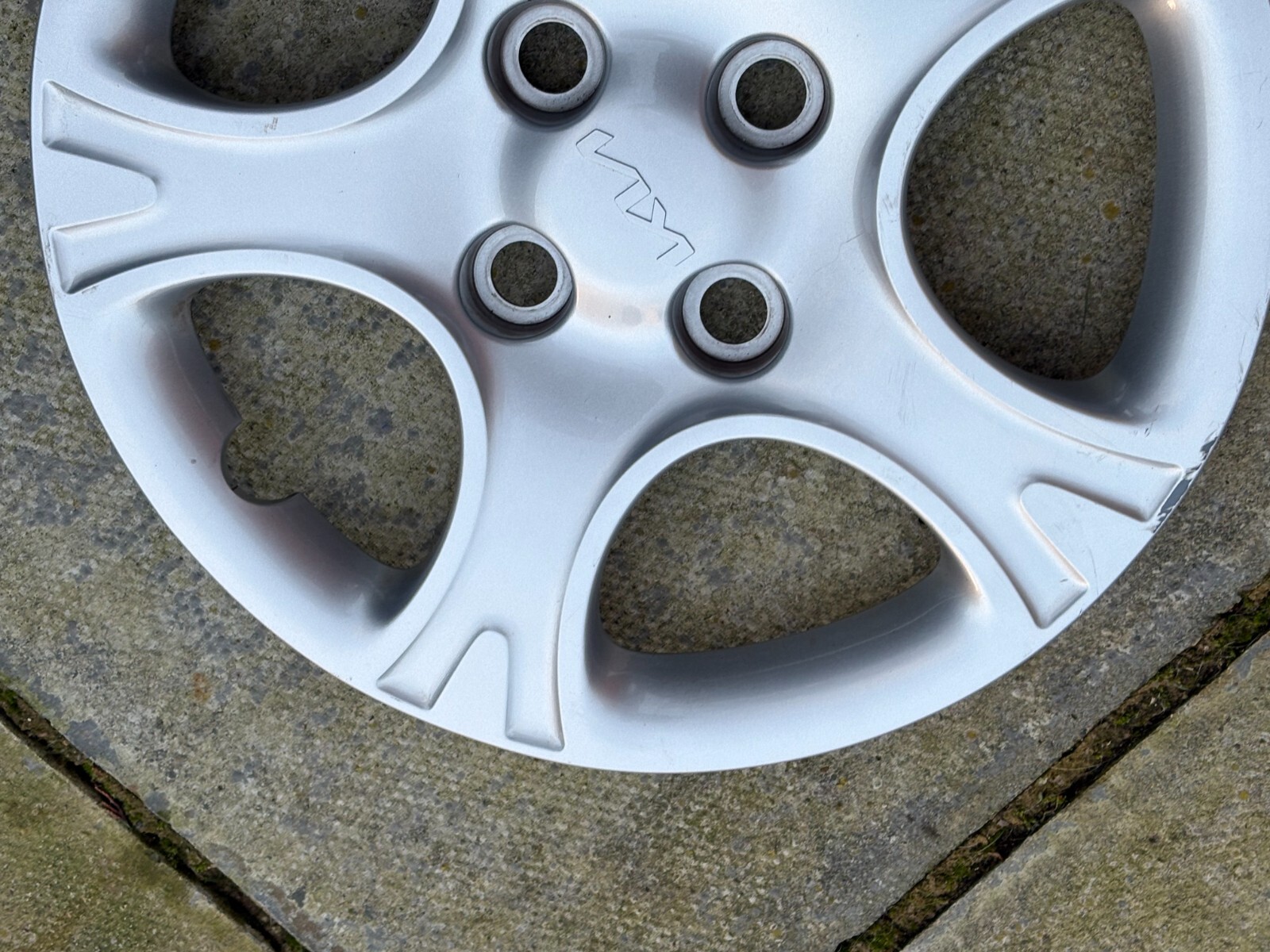 GENUINE 14'' KIA WHEEL TRIM X 1 BOLT ON TYPE HELD ON WITH WHEEL STUDS HAS ODD WEE TAR SPOT OVER IT FEW FAINT SCRATCHES EDGE OF FACE & LOWER PART OF 1 ARM FEW WEE SCRATCHES ON RAISED PART OF 2 ARMS TOWARDS EDGE (1 SIDE ONLY) 1 ARM HAS A HAS A FEW WEE SCRAPES/SCRATCHES TOWARDS EDGE + SCRAPED AT EDGE ODD WEE SCRATCH AT EDGE + SCRAPE (END OF ARM) AS SEEN IN PHOTO ANY QUESTIONS JUST ASK IS THIS THE RIGHT TRIM FOR YOU CHECK THE SIDE WALL OF YOU TYRE EXAMPLE 175X70 R14 ITS THE R NUMBER THAT GIVES YOU THE SIZE OF TRIM NEEDED 4 THIS ITEM WILL BE SENT ROYAL MAIL 2ND CLASS. THEY WILL BE WELL WRAPPED AND SECURELY PACKAGED. POSTAGE IS TO MAINLAND UK AND NORTHERN IRELAND ONLY - PLEASE CONTACT ME FOR ALL OTHER AREAS INC CHANNEL ISLANDS AND SCOTTISH ISLANDS & ISLE OF MAN RETURNED ITEMS ARE AT BUYERS COST
