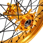KKE 2.5*17/3.5*17 " Spoked Wheels Rims Set Fit Surron Ultra Bee 2023 2024 CNC Gold Hub Item Includes 1* 2.5*17 INCH FRONT WHEEL WITH BEARINGS MOUNTED 1* 3.5*17 INCH REAR WHEEL WITH BEARING MOUNTED 1* SPACERS KIT (SPACERS AND SEALS) Fitment Compatible with Surron Ultra Bee 2023-2024 Features 100% BRAND NEW 6082-T6 ALUMINUM CNC MACHINED HUB 7050-T6 ALUMINUM RIM HIGH QUALITY IRON SPOKE ALLOY NIPPLE CNC ANODIZED COLOR COMPATIBLE WITH OEM ALEXS, BRAKE DISCS & SPROCKET Color Combo GOLD HUB GOLD RIM BLACK NIPPLE BLACK SPOKE PICK UP ATTENTION: Address: EZSEAS Inc. 13850 Central ave., unit 200 Chino, CA 91710 Time: 10 a.m. to 6 p.m. from Monday to Friday! Please send messages to us for pick up proof before you come to our warehouse, otherwise, you can not get the wheels. Additional Information 1. Please inform us the year and model of your motorcycles before or after checkout. 2. Please feel free to contact us if you require more detailed information or have any special instruction for the processing of your order. 3. Our wheels are fully adjusted and spokes are tightened during assembly. However, we still recommend buyer to double check and tighten the spokes before riding. This is to make wheels keep a balanced level of tension in their components. 4. Accept customized orders, additional fees may be required. If you want the wheel set in other color combo or rim size, please contact us, we might be able to build them for you. Thanks. Warranty Information One Year Manufacturer Defect Warranty On KKE Wheels (Include Hub, rim & Spoke) Returns/Exchanges: Items can be returned if: 1. Not compatible. 2. Being obviously damaged or used. 3. Wrongfully sent. Note: 1. Please contact us before sending the merchandise back, thank you. 2. Return or Exchange without notifying us may face refuse and delay of service. 3. Customer is responsible for return freight charges if there is nothing wrong with our item. 4. Please allow 3-7 business days for refund or exchange to be processed, thank you. Rim Wash Note Please note that wheels can only be washed with “mild soap”Do not wash rim with Natrium hydroxide based liquids (like “wheel wash and “iron removers”), these will spoil the anodization immediately, then the color will be faded. Contact Us As a long-established company, we provide prompt and friendly service. Please feel free to email or call us if you have any question. We will be very pleased to answer and resolve any problem ASAP. Thank you. Payment We accept PayPal, Google Pay, Visa, Master Card, Amex and Discover Shipping s hip from California within 1-2 business days of receiving cleared payment. Free Shipping to United States Continental Disclaimer autobigtime's parts are not sponsored or endorsed by, or affiliated with, KTM, Duke, Husaberg, Husqvarna, Honda, Yamaha, Kawasaki, Suzuki, Beta, TM, Gas Gas, Sherco, BMW, Ducati, Triumph, Harley-Davidson etc . All KKE parts are after market replacement parts for these brands. KKERACING.COM
