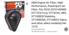 The K&N HA-1310 Hi-Flow Air Intake Filters are designed as a performance/custom upgrade for 2010-2024 Honda Fury motorcycles. These drop-in filters offer a direct replacement fitment and feature a high-flow design to improve air intake efficiency. Made by K&N in the United States, the filters have an OE Spec for improved performance, while being easy to install with no modifications required. The product is backed by an unspecified length warranty and is in stock for quick shipment within one business day. Check out my other items listed for Honda fury accessories. *** Only ships within the United States and not to Puerto Rico, Guam, us virgin islands, Northern Mariana Islands, or American Samoa.