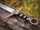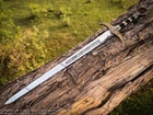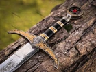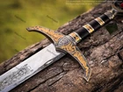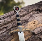 A **Damascus steel sword** is renowned for its striking appearance and exceptional durability. The blade is crafted from multiple layers of steel, folded and forged together to create distinctive, wavy patterns that resemble flowing water or organic wood grain. These patterns, unique to each blade, are not just decorative but also a testament to the craftsmanship and skill involved in the sword’s creation. Damascus steel swords are known for their hardness and ability to hold a sharp edge, making them effective for cutting and slashing. Historically, these swords were prized for their resilience in battle and their resistance to shattering. The hilt of a Damascus steel sword is often wrapped in leather or cord, providing a comfortable, firm grip, and the crossguard may feature minimalistic or elaborate designs to match the blade’s artistry. Owning a Damascus steel sword is like having a piece of history and artistry combined, admired by collectors, martial artists, and enthusiasts alike. Its balance of aesthetic beauty and functional strength makes it a prized addition to any sword collection. We offer international shipping and urge buyers to verify their local laws before ordering. By placing an order, you confirm compliance. International delivery is provided, but addresses in DHL's remote areas incur a surcharge: $45 USD for expedited worldwide delivery and $20 USD for 2-week shipping in the US.