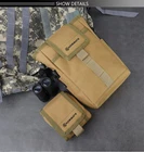 【DURABLE MATERIAL】This dump pouch is made of high quality 900D nylon with water-resistant coating, sturdy and lightweight. 【USEFUL DESIGN】Drawstrings opening and Hook and Loop closure design, simple and easy for practical use. Front velcro pocket with two sides pockets to hold flashlight or other small items. 【MOLLE COMPATIABLE】Easily attaches to Belt or Vest, great choice for Camping, Hiking, Running, Cycling and Hunting. 【FITS FOR】Folded: approx. 3.8"x4.8", Unfolded: approx.6.5"x3"x9.5, Great for ammo, magazine, supplies, tinder, whatever you need to dump in there.
