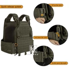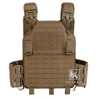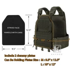 Features : * Made with durable 500D nylon fabric, water resistant and lighweight. * Vest is engineered to provide low-profile, lightweight integration to your MOLLE compatible gear. * Upgraded with quick release cummerbund and shoulder strap. * Laser Cut MOLLE provides the same great application as standard MOLLE with a lightweight design. * Interior Air Mesh Padding For Added Protection And Ventilation. * Included high density EVA foam dummy plates, front and back armor pockets can be holds standard M size 9.5" X 12.5" / 10" X 12 "plates. * Detachable and adjustable cummerbund can extend to a max waist size of 55". * Store your phone, keys and other small essentials in the upper front pocket. * Emergency drag handle located on back. Package : * KRYDEX Quick Release Plate Carrier * 1 set * Front Detachable MOLLE Flap * 1 pcs * Back Detachable MOLLE Flap *1 pcs * EVA foam dummy plate *2 pcs