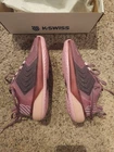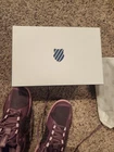 The K-Swiss Ultrashot 3 Tennis Pickelball Shoes in box for women size 7 in pink and purple are a stylish and functional pair of sneakers specifically designed for tennis and pickleball players. With a comfortable fit and durable construction, these shoes provide the support and stability needed for active sports. The vibrant pink color adds a fun and feminine touch to the classic design, making them a fashionable choice for athletic women on the court. The shoes have been worn Once and didn't fit.