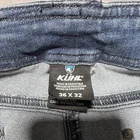 Brand: KUHL Item: Men's jeans in blue indigo denim Tag size: 36 x 32 Features: Straight leg; classic 5-pocket styling with additional zippered security pocket at back right; zip fly with button closure; belt loops; contrast stitching; branded hardware and coin pocket badge Labels/markings: "BORN IN THE MOUNTAINS" tag; ; Indigo dye care instructions Country of origin: Made in Pakistan Notes: Indigo dye may transfer color; wash separately as instructed on tag. Sizing can vary—compare to a similar pair for best fit.
