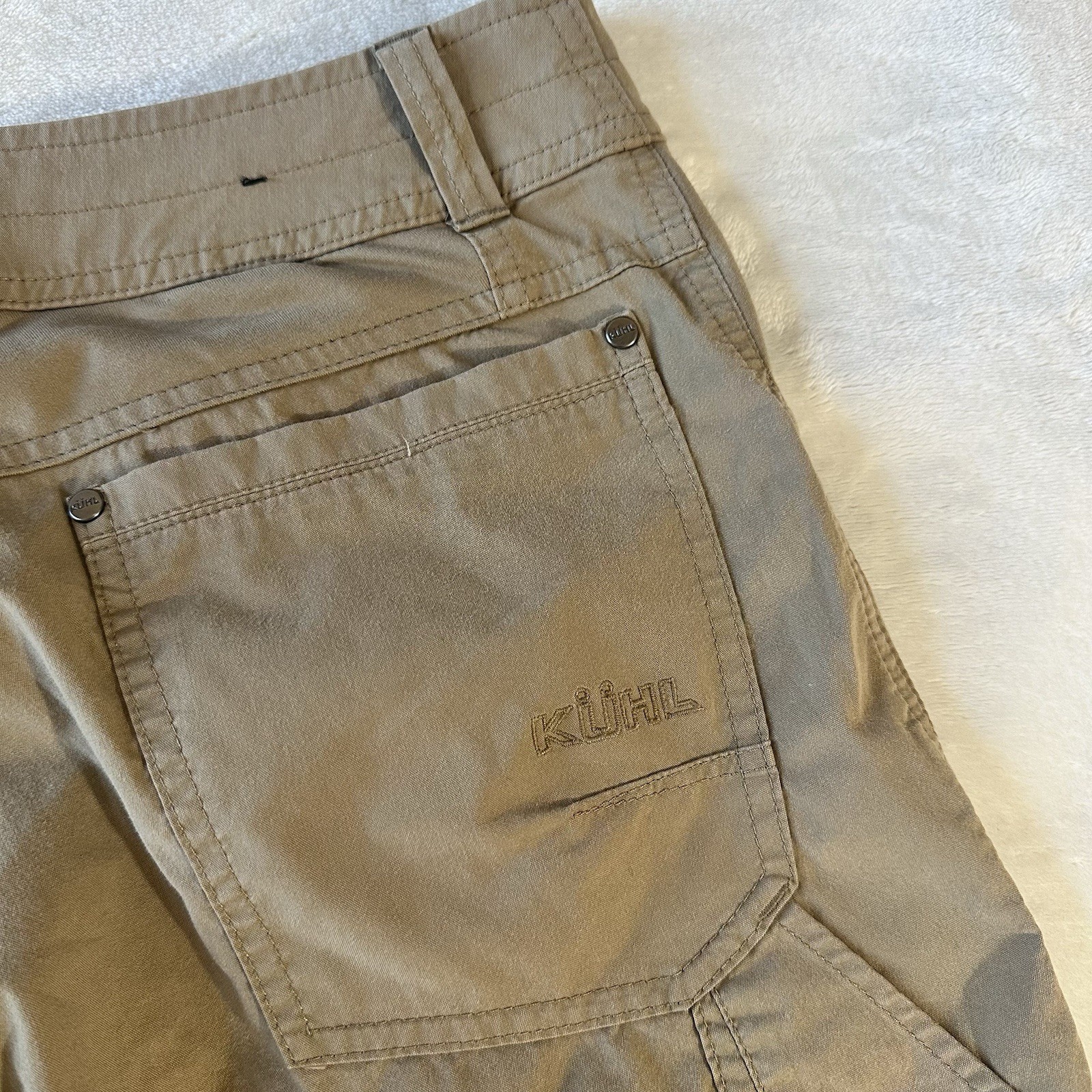 Stay comfortable and stylish on your outdoor adventures with the KUHL Fossil Tan Shorts. Made of durable nylon with a hint of stretch, these shorts are perfect for hiking, camping, or casual wear. Featuring a vented design and multiple pockets, they offer both functionality and breathability. The classic chino style in a solid beige color makes them versatile for various occasions, while the machine-washable material ensures easy care. Whether you're traveling, working, or simply enjoying the great outdoors, these shorts are a must-have for your wardrobe.