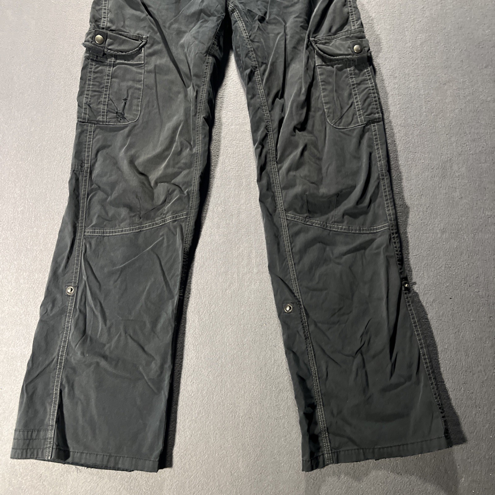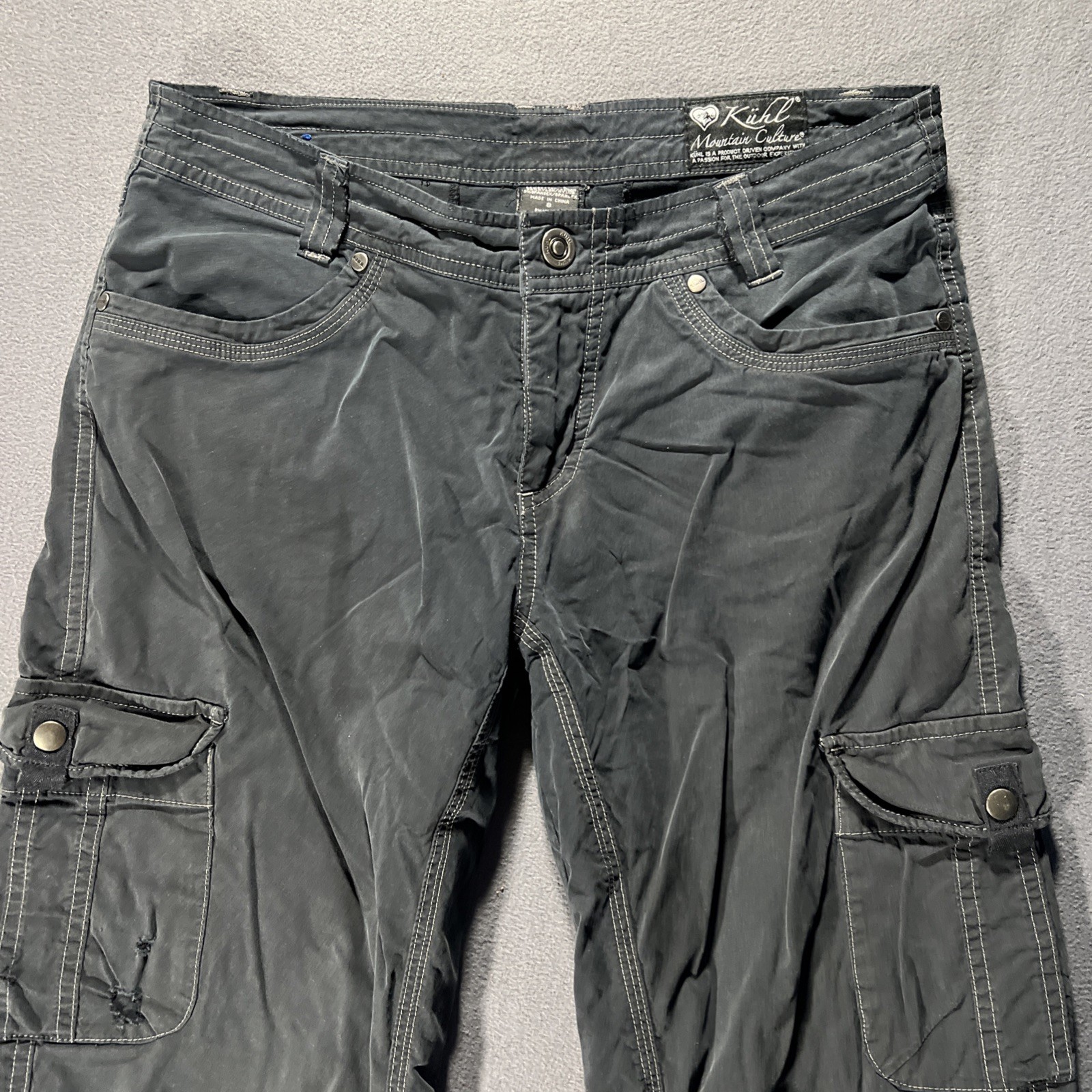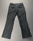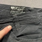 *Please review all photos closely before purchasing due to pants having signs of use and wear with some holes on right cargo pocket and some mild distress to belt loops and pant leg ends as well as some faint discoloration of fabric from washing use and wear to prevent return.* The KUHL Splash Roll-Up Hiking Pants for women in size 8 are designed for versatile use in travel, casual, or workwear occasions. These cargo-style pants feature a zip closure, low rise, and straight leg fit. The vintage patina dye adds a unique touch to the charcoal black color, while the nylon, spandex, and cotton fabric ensures durability and comfort. With roll-up pantlegs, pockets, and a logo accent, these pants are perfect for outdoor activities in any season, making them a great addition to any wardrobe for those who enjoy nature, hiking, or a 90s-inspired style. Gorp GorpCore Travel Vacation Pants Capri Convertible Roll Up Thru Hiking Trail Born In The Mountains Kühl
