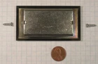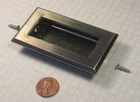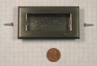 This lot consists of one (1) piece of a Knape and Vogt (K&V) wrought brass, dark brushed chrome-plated drawer or sliding door pull, 1 3/4" wide, 3 1/4" long, with a mortise depth of 9/16". Beveled edges. Created by eBay Blackthorne ver. 3.2.31.0