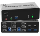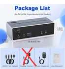 There is not a manual or remote control with this item. KVM switch, the power cord, and usb cable are sold as is. 8K@60Hz 4K@144Hz HDMI and 2 Displayport Triple Monitor KVM Switch for 2 Computer Share 3 Monitor, USB3.0 Switch with Audio Mic(with US Plug) This KVM switch allows you to connect three monitors and switch between them with ease. It supports 8K@60Hz and 4K@144Hz resolution, and comes with HDMI and DisplayPort connections. Additionally, it has four USB 3.0 ports for connecting other devices. The unit is powered and portable, making it easy to use and carry around. The black color and sleek design make it a stylish addition to your workspace. The KCEVE brand ensures quality and reliability.