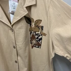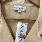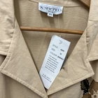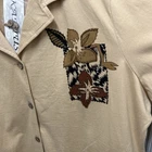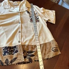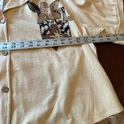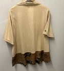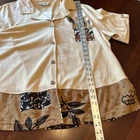 Kaktus Womens Blouse Tan 3X LINEN Button Front Floral Casual Y2K Tropical NWTAdd a touch of vintage charm to your casual look with this beautiful tan linen blend blouse. The floral pattern, collared neckline, and button closure make it the perfect addition to your wardrobe. This tunic top is made of a lightweight and breathable woven fabric that consists of a blend of rayon, linen, and cotton. It features a collar design, short roll tab sleeves, and a casual sleeve type that adds to its comfort. The garment care is easy as it is machine washable. This blouse is perfect for a beach or bohemian themed occasion and is available in size 3X. Island, Tropical, Vintage Look, Y2K, 90s, Linen Blend