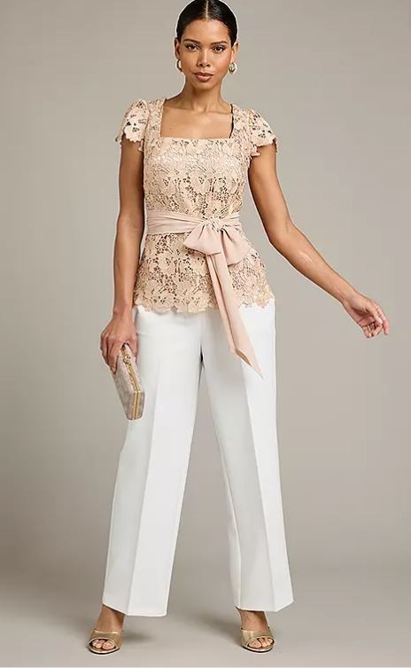 Elevate your style with our Champagne Lace Top. Featuring a chic square neckline and a flattering chiffon belt, it’s the epitome of effortless elegance. Perfect for any occasion, this enchanting piece promises to turn heads and inspire awe. 100% Polyester Lining 95% Polyester, 4% Elastane Belt 100% Polyester Length approx. 65 cm Available in: Champagne