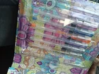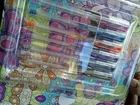 The Kaleidoscope Metallic And Glitter Gel Pens Coloring Kit includes 2 gel pens with a metallic finish in a variety of multicolor shades. These pens are ideal for crafts and art projects, providing a vibrant and shimmering effect on paper. The kaleidoscope design adds a unique touch to your drawings and lettering, making it a fun and creative addition to your art supplies collection.