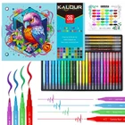 Kalour Dual Markers Brush Pens, 36 Fine Point Art Marker, Double Tip Colored Pen for Adult Coloring Hand Lettering Writing Planner 36 VIBRANT COLORS:Explore a rich palette of 36 vibrant colors, providing endless possibilities for your artistic creations.Ideal for a multitude of artistic pursuits:Hand Lettering,Coloring Books,Signing,Design,Art Projects,Planning & Journaling,Manga & Animation. BRUSH & FINE POINT DUAL TIPS:Experience the versatility of dual tips – BRUSH for sweeping strokes and blending, FINE POINT for intricate details like sketching and writing. COLOR NAME & NUMBERED:Effortlessly find your desired color with color name and numbered markers. The included DIY color chart allows you to match each marker to its corresponding block for easy reference during your creative process. SMOOTH FLOW, HIGH-QUALITY INK:Enjoy the benefits of high-quality water-based ink that flows smoothly. The ink's vibrant colors seamlessly blend, providing beautiful and consistent coloring effects without smudges. MULTIFUNCTIONAL & SUITABLE FOR ALL AGES:Ideal for various artistic pursuits such as drawing, lettering, coloring books, and sketching. Perfect for individuals of all ages, making it an excellent gift for artists, students, and creative enthusiasts. PORTABLE CASE:Housed in a case, these markers are perfect for creativity on the go. The organized case ensures that your vibrant, no-bleed markers are always at your fingertips.