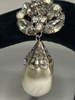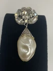 Kandell & Marcus Victorian brooch Crystal Rhinestone crystal Lucite Pearl 2.75 “. Condition is Pre-owned. Shipped with USPS Ground Advantage.