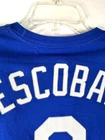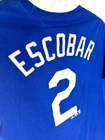 Bright Blue awesome KC Royals Fan Gear T-shirt representing Escobar #2 for Major League Baseball. Sizes may vary and not all brands fit the same. Please compare approximate lay flat measurements to your favorite shirt: Shoulder to Shoulder: 16" Sleeve: 8" Chest: 17" Waist: 17" Length: 25.5" Thank you for your time and considering Theegoatsportngoods for your fan gear purchase.