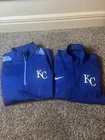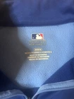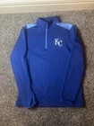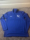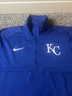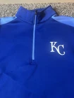 Gear up for game day with the Kansas City Royals MLB Majestic and Nike Cool Base 1/4 Zip Pullover Jacket in a men's size medium. This jacket is designed with the fan in mind, featuring the iconic blue color and the Royals' logo, making it a perfect addition to your game-day wardrobe. Crafted for comfort and style, the pullover is part of the regular season collection and is officially licensed by the Major League Baseball. Constructed with quality materials in Vietnam, this jacket boasts the durability and design that Majestic and Nike are known for. Whether you're at the stadium or just showing your team spirit around town, this piece is a versatile choice that brings a touch of the ballpark into your everyday life.