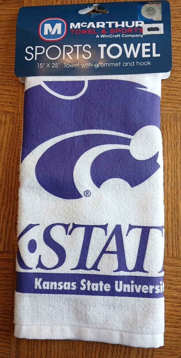 The Kansas State Wildcats 15" x 25" Sports/Golf Towel by Mcarthur a Wincraft company is a must-have accessory for any sports/ golf enthusiast who is a fan of the Kansas State Wildcats. The towel features the team's colors of purple and white and has a grommet and hook making it a stylish and practical addition to your golf gear. Made for unisex adults, this towel is versatile and perfect for showing off your team spirit. New with tags