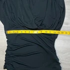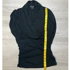Elevate your wardrobe with this stunning Karen Kane black top. The exquisite drape front creates a sophisticated silhouette, while the artful ruching along the sides adds a flattering texture and a touch of modern glamour. Measurements: • Bust: 17 in • Length: 23 in Type: Blouse Department: Women Style: Jersey Material: Polyester, Spandex, Rayon Neckline: Cowl Neck Sleeve Length: Long Sleeve Sleeve Type: Puff Sleeve Pattern: Solid Accents: Pleated Theme: Classic Features: Stretch, Wrinkle Resistant Fit: Slim Fabric Type: Knit Occasion: Workwear, Casual, Party/Cocktail Keywords: Karen Kane, black top, drape front, ruched, dolman sleeve, womens top, designer top, evening wear, cocktail attire, sophisticated, chic, flattering fit, workwear