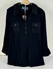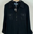 Brand new with tags,Karen Scott Women's 3X 3/4 roll tab sleeve in deep black. Blouse is collared, v-neck with 3 faux buttons as well as 2 working pockets on chest. Measurements: - Please refer to the photos above for all measurements. - Please compare our measurements to that of one of your favorite garments. - Please note, item measurements are approximate . - Colors may differ slightly in shade from photos to actual item due variances caused by photography lighting and monitors. All items are bagged and sealed after being photographed, then stored in a smoke free environment to ensure the item is exactly the same as when photographed. We always carefully package and ship ASAP. Feel free to contact us with any questions. All items are washed per eBay standards and policies. We greatly appreciate your business! Please remember to leave positive feedback if you are happy with your purchase! Thanks for looking!