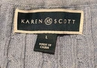 The Karen Scott Sweater is a stylish and colorful addition to any woman's wardrobe. This sweater features a classic V-neck design with a blue and white striped pattern, perfect for adding a pop of color to any outfit. The cable-knit style adds texture and warmth, making it a versatile piece for the fall and winter seasons. With long sleeves and a comfortable fit, this sweater is both fashionable and cozy, ideal for everyday wear.