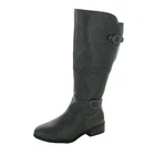 Karen Scott Women Grey Vegan Leather Leandraa Casual Knee-High Boots Size 6.5 New with box MSRP $89 1-1/2" block heel Riding boots with snake print elements Inner ankle zipper closure Almond-toe Extended wide-calf Buckled straps at shaft Manmade upper Fabric lining Manmade sole