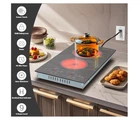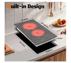 【Smooth Glass Surface with Beautiful Pattern】I think you must have been attracted by the beautiful, distinctive pattern of this 2-burner electric cooktop. Yes, this is Karinear upgraded version of electric stove, we added pattern to it on the glass to make the whole stove look better. Bring home this beautiful pattern 12-inch electric cooktop and make your kitchen even more special, less monotonous. 【Safe, Multifunctional Electric Stovetop】Each burner corresponds to an independent operating area, and it is very simple for anyone to use the dual ceramic cooktop. The two-burner electric cooktop is very safe for it has various safety protection functions, such as child safety lock, 99 mins timer, auto shutdown, residual heat warning and pause function. Pregnant women can also use the electric cooktop 2 burners with confidence. 【110V Electric Cooktop with Outlet Plug 】The 110-volt kitchen stove is suitable for 110~120V that you can plug it into your home outlet and you're ready to cook, no need to find an electrician to help with wiring. The power of the electric cooktop 2 burner is 1400W and 600W. Large burners have 1-9 adjustable heat levels, while small burner has two: "L" means low, and "HI" means high. Small burner is generally suitable for heating coffee and milk or keeping warm. 【Countertop Use or Drop-in Install】If I'm right, you're worried about how to install the 2-burner electric stove, right? Do not worry about this problem at all, because this is a portable electric stove, it come with 4 brackets, you can use the 110v stove directly on the countertop. Of course, if you have the right size hole in your kitchen, you can install it drop-in. Built-in electric cooktop can save space, and the overall look is more beautiful and generous. 【Glass Cooktop, Easy to Clean】The surface of this 110v cooktop is made of smooth glass, easy to clean, just need a light wipe with a damp cloth. We will give a cleaning scraper as a gift to help you clean. (Be sure to wait for the 'H'(High Temperature Warning) to wear off before cleaning, otherwise it may burn your hands.) Electric Stovetop size: 20.5" x 11.4", cut-out size: 19.3"x10.63"x2.13"