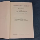 Description: Complete four-volume section of Karl Barth’s monumental theological work Church Dogmatics , covering The Doctrine of Reconciliation (Volume IV) . Published by T&T Clark, Edinburgh , 1958–1962. All volumes are hardcover editions with original dust jackets . Included Volumes • Volume IV/1 – The Doctrine of Reconciliation (1958) • Volume IV/2 – The Doctrine of Reconciliation (1958) • Volume IV/3 – The Doctrine of Reconciliation (1961) • Volume IV/3 – Second Half Volume (1962) Condition These volumes come from the personal library of a pastor and contain significant but neat underlining and margin notes written in small handwriting. Additional condition details: Prior owner’s name written on the front flyleaf Bindings solid and tight Text pages clean aside from the noted annotations Dust jackets present with typical age and shelf wear A solid scholarly study set of one of the most important theological works of the twentieth century. About the Work Karl Barth’s Church Dogmatics is widely regarded as one of the most influential theological projects of modern Christianity. Volume IV, The Doctrine of Reconciliation , presents Barth’s extensive treatment of Christ’s reconciling work between God and humanity. Shipping Carefully packed to protect dust jackets.