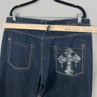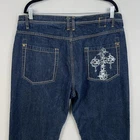 Light wash wear; no stains or holes observed. Cross graphic and studs intact. Zipper, button, and pockets work properly. Karl Kani Jeans Mens 40x32 Blue Denim Cross Pocket Embellished Studded Hip Hop Brand: Karl Kani (Kani Gold) Item: Jeans Gender: Mens Tag size: 40/32 Color: Dark blue denim with contrast white and yellow stitching Features: 5-pocket styling; zip fly with Karl Kani branded button; belt loops Features: Straight leg silhouette with relaxed streetwear vibe Back details: Cross graphic on right pocket with metal stud embellishments Logos/Markings: Kani Gold inner tag; Karl Kani button hardware Material: Denim (fiber content tag not shown) Notes: See photos for details and compare to a similar pair for best fit. 21999 Measurements: - Previous washings may change the sizing written on the tag. - Please refer to the photos above for all measurements. - Please compare our measurements to that of one of your favorite garments. - Please note, item measurements are approximate . All items are bagged and sealed after being photographed, then stored in a smoke free environment to ensure the item is exactly the same as when photographed. All items have been washed per eBay standards & policies. I carefully package and ship daily. Feel free to contact me with any questions.