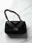 Karl Lagerfeld Paris Shoulder Bag Purse Quilted Black Leather Embellished Charms