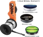 KastKing Radius Line Spooler – Compact Fishing Large Spinning Casting Reels KastKing Radius Line Spooler – Compact Fishing Large Spinning Casting Reels Key Features – Unique patent pending design - Spool spinning reels and casting reels without fishing line twist – compact design for easy storage and portability – 1/4lb spool capacity – Soft touch clamping points protect rod blanks – adjustable line spooling tension bands ensure that line is spooled tightly on the reel - works with monofilament, fluorocarbon, and braided fishing line. PATENT PENDING LIINE SPOOLING TOOL– The innovative KastKing patent pending line spooler design is simple to use and can spool both spinning reels and baitcasting reels without any line twist. Rubber coated clamp points firmly grip nearly any size rod without damaging your fishing rod and tension bands can be adjusted to apply the ideal line tension during the spooling process. Made with non-rusting ABS materials. NO LINE TWIST – The Radius design allows fishing line to come off your filler spool and directly onto the reel spool without any twist in the fishing line. When spooling a casting reel, the line comes off the top of the filler spool and winds directly onto the top of a casting reel without changing the coiled memory of the line. For a spinning reel, the line is un-coiled from the filler spool and coiled directly onto the reel spool in the same fashion. SPOOLING MADE EASY – Place the tension band on a spool of line, clamp the Radius to a rod, using the threaded t-handle mount up to a 1/4lb spool of line on the tool, attach the fishing line to the reel spool, and crank the handle to fill your fishing reel with your favorite fishing line. Instruction cues are molded into the tool as a quick reference to ensure your set up is correct for spinning and casting reels. COMPACT DESIGN – The small design of the KastKing Radius line spooling tool makes it easy to store with your fishing gear at home or take on the road. The threaded t-handle stores inside the Radius and the tension band can be attached to the Radius to ensure all the components are stored together. The Radius is always there when you need to spool line. KastKing Radius Line Spooler compact design easily fits in your tackle bag, jacket pocket, or boat or truck glove box Listing and template services provided by inkFrog