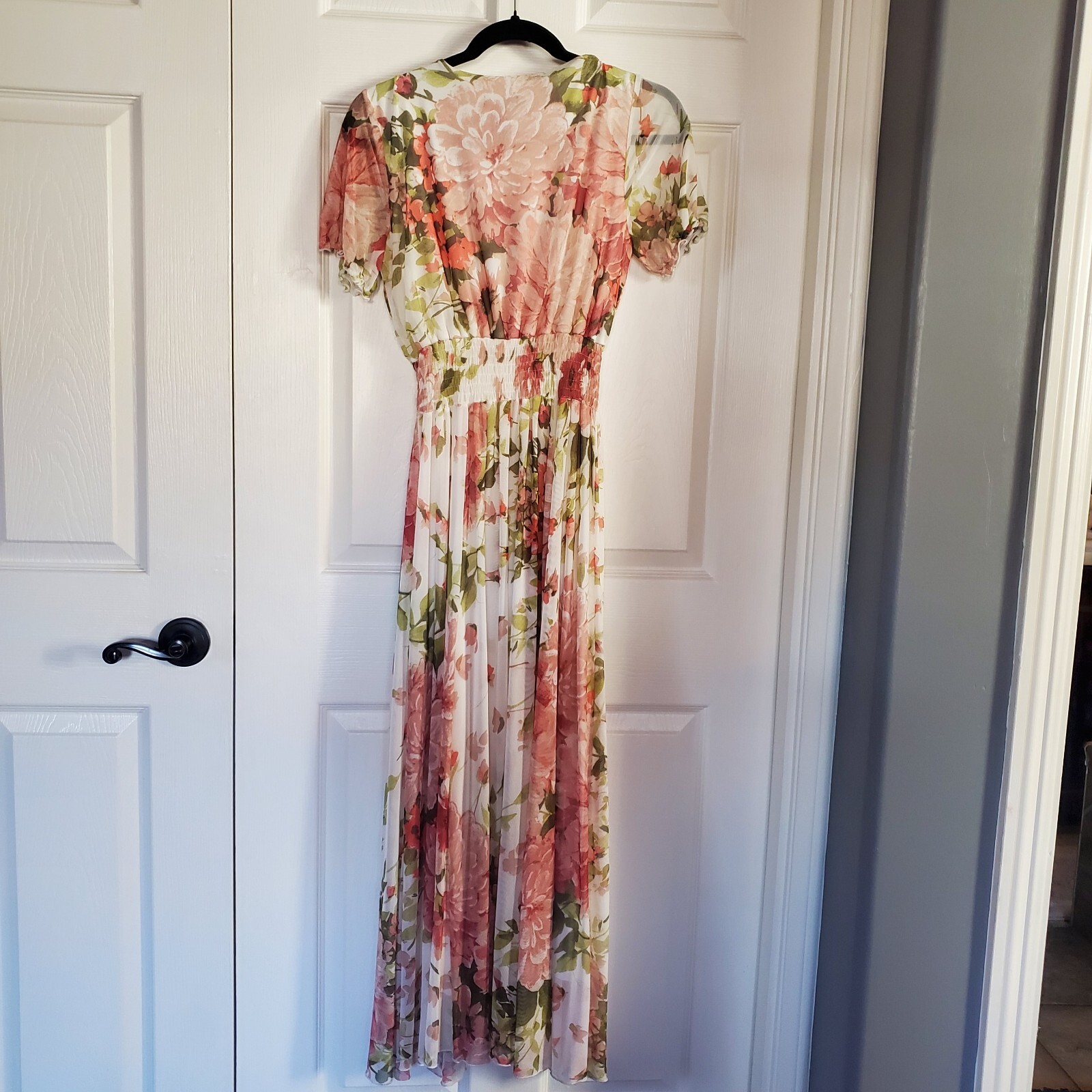 Beautiful pullover dress, with flutter short sleeves, smoked waistband, lined. In very good condition. Please see pictures for details and let me know if you have any questions I ship the next business day