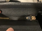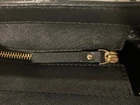This Kate Spade leather tote shoulder bag is the perfect accessory for any casual or business occasion. The bag features a solid black exterior color and is made of high-quality leather material. It has a large size with a width of 13 inches, height of 12 inches, and depth of 8 inches. The bag comes with a shoulder strap handle in black color and is designed with a zip closure.The bag has multiple features including inner pockets. It is suitable for women and has a style of a shoulder bag. The handle and strap are made of leather material. Get your hands on this stylish Kate Spade shoulder bag today! The manufacturer info is the following: RN0102760/CA57710 (see photo of tag). There is a small defect on the side of the bag as shown in the photos. Happy bidding!