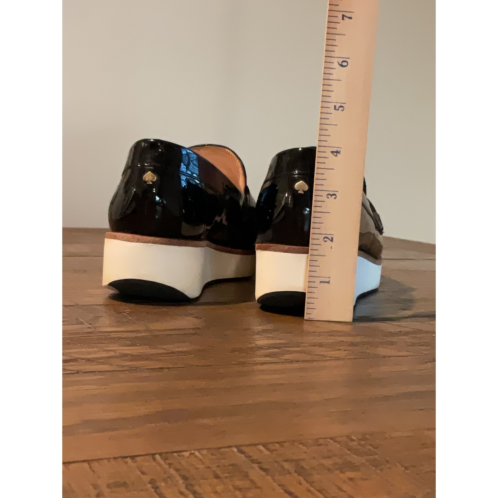 Step into sophisticated chic with these stunning Kate Spade black patent leather platform loafers. The high-shine patent finish catches the light, adding a touch of glamour to your every stride, while the sleek silhouette offers timeless appeal. Measurements: • Heel height: 1.5 in • Platform height: 1 in • Insole length: 9.5 in Style: Loafer Department: Women Upper Material: Patent Leather Features: Padded, Cushioned Occasion: Casual, Business, Workwear Theme: Shiny, City Insole Material: Leather Lining Material: Leather Outsole Material: Rubber Type: Flat Keywords: patent leather, platform shoes, womens loafers, black loafers, designer shoes, chunky sole, smart casual, business casual, polished, chic footwear, sophisticated style, everyday luxury Condition: Showing light wear on the interior of the shoes. Please see pictures. Measurements: Please compare measurements to something you already own and love. Shipping: We ship all items within two business days.