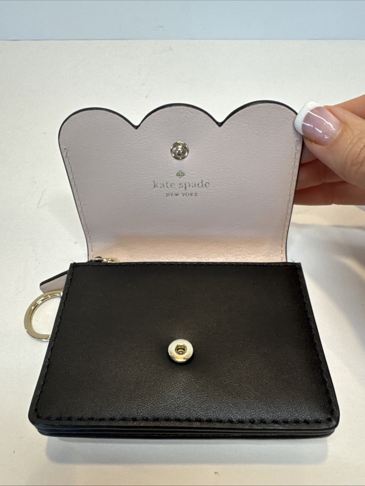 Darling keychain wallet from Kate Spade. Black leather with pink interior. Never used.