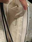 Kate Spade Josephine Parchment Drive Crossbody in cream and black Pebble leather. Style no. WKRU3800. Gold hardware. 2 Fabric lined gusseted interior has center divider and features 1 full length zip pocket and 2 slip pockets Magnetic closure. Kate Spade name plate and adjustable 20.5" shoulder strap. Approx. Dimensions: 10.5 in L x 7.5 in H x 3.25 in W Comes with certificate of authenticity