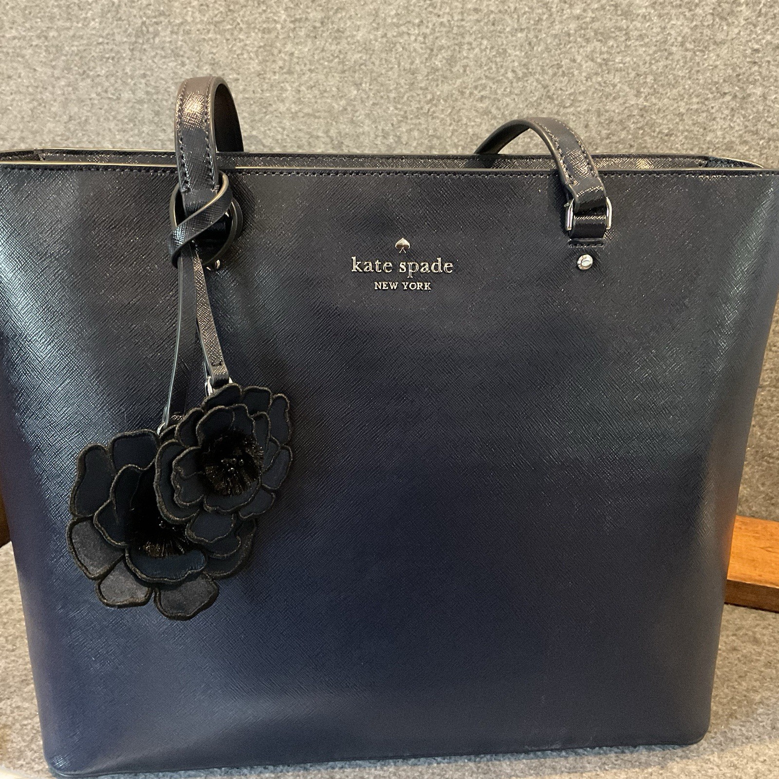 The Kate Spade Large Tote Shoulder Bag Purse in blue is a stylish and practical accessory for any occasion. With a rectangular shape and double handles, this tote features a zip closure, pebbled finish, and silver hardware. The bag is lined with a combination of leather and fabric, with inner pockets, a phone pocket, and a bag charm for added functionality. The exterior is made of leather, making it a durable and high-quality choice for everyday use or for special events. Perfect for those who appreciate designer fashion with a classic touch. I love this purse. The navy blue is beautiful. This is new with tags. The retail price on this bag is $498. I am asking $249 which is half price. Please reach out with questions. Thank you.