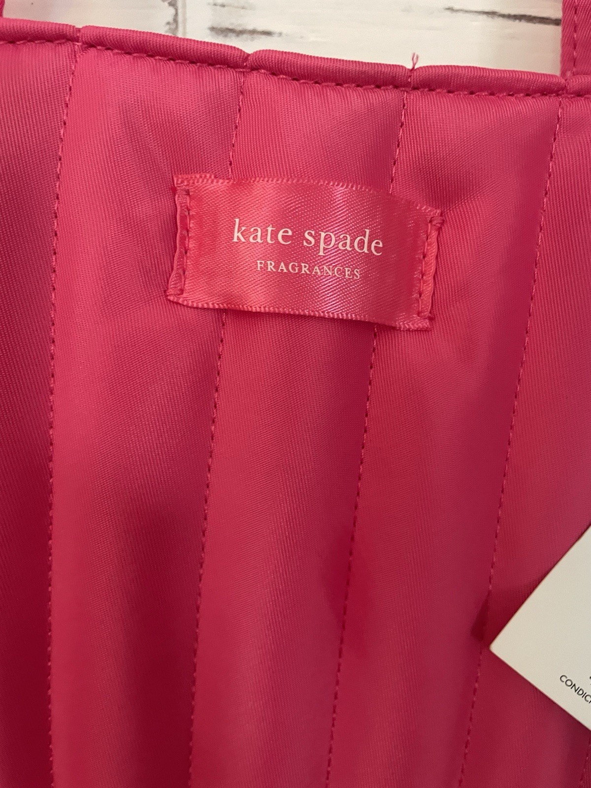 Bright and stylish Kate Spade Fragrances tote bag in a bold hot pink color. Originally offered as a gift with purchase from Kate Spade fragrances. Features vertical quilted stitching, lightweight design, and open top. Perfect for everyday use, shopping, or as a casual carry-all bag. Details: • Brand: Kate Spade Fragrances • Color: Hot Pink / Fuchsia • Style: Quilted Nylon Tote Bag • Handles: Dual shoulder straps • Closure: Open top • Interior: Unlined • Approx. Dimensions: 17” H × 14” W × 4.5” D (estimated) • Includes original hangtag • Condition: New, unused
