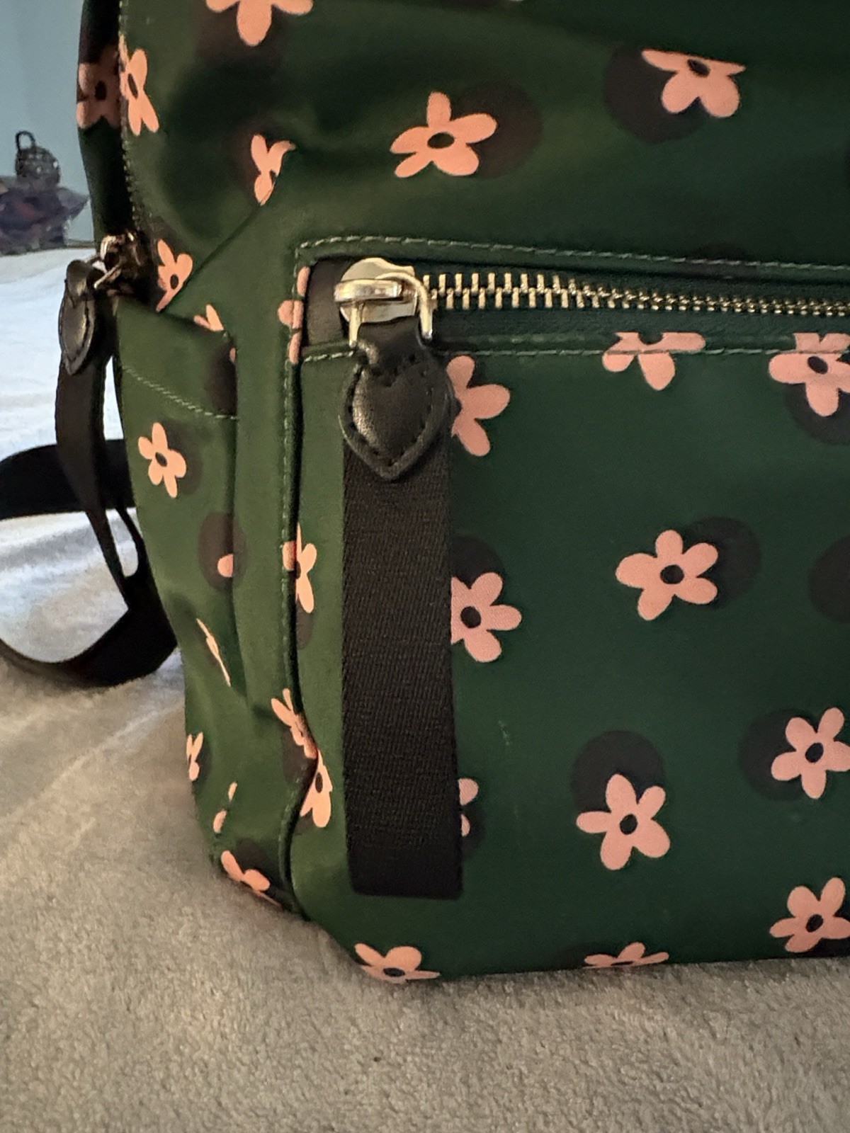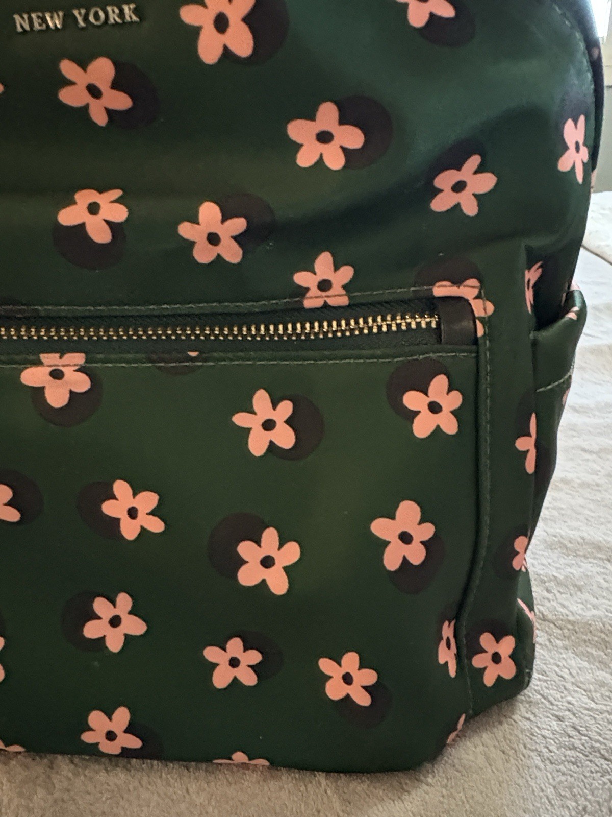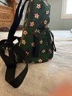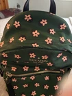 The Kate Spade K6073 "Bico Green" Multi-Daisy Women's Backpack is a stylish and practical accessory for any occasion. Featuring a floral pattern in a vibrant green color, this medium-sized backpack is perfect for travel or casual use. The adjustable shoulder strap and zip closure make it convenient for everyday carrying, while the inner and outer pockets provide ample storage space. Made of durable polyester and nylon materials, this designer backpack by Kate Spade New York combines fashion and functionality in a classic city-inspired style.