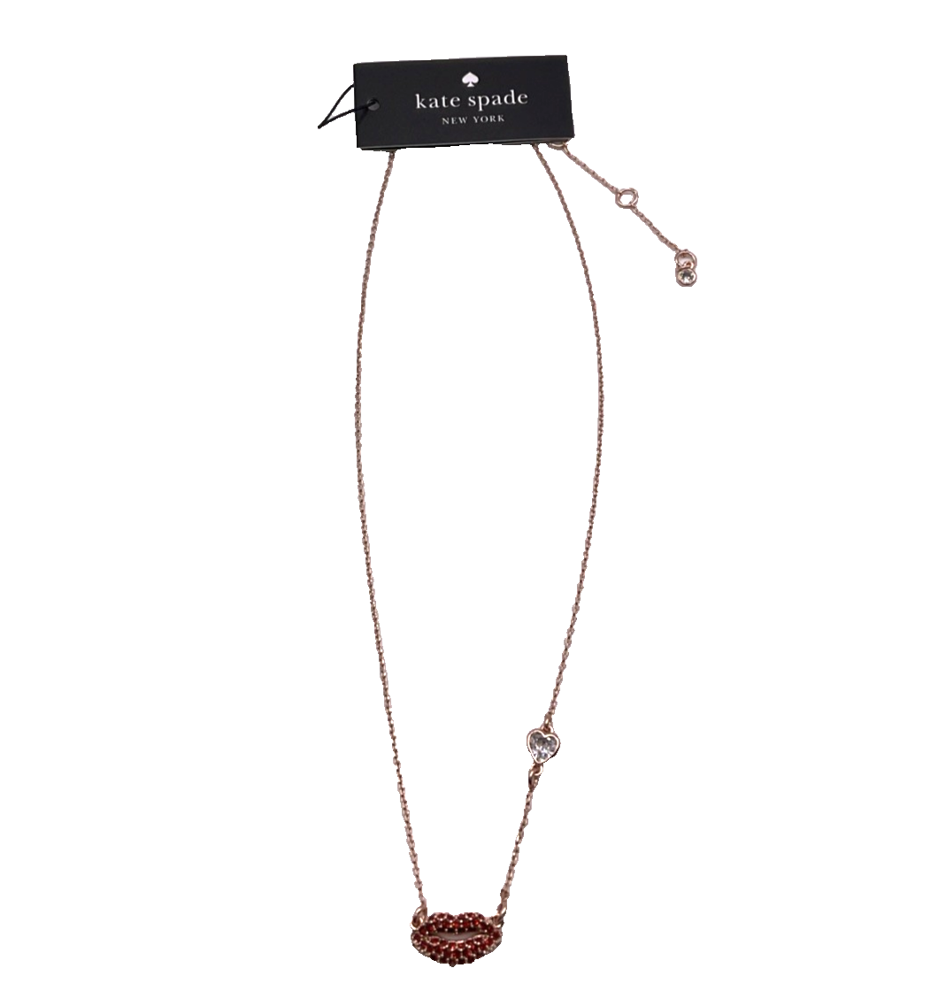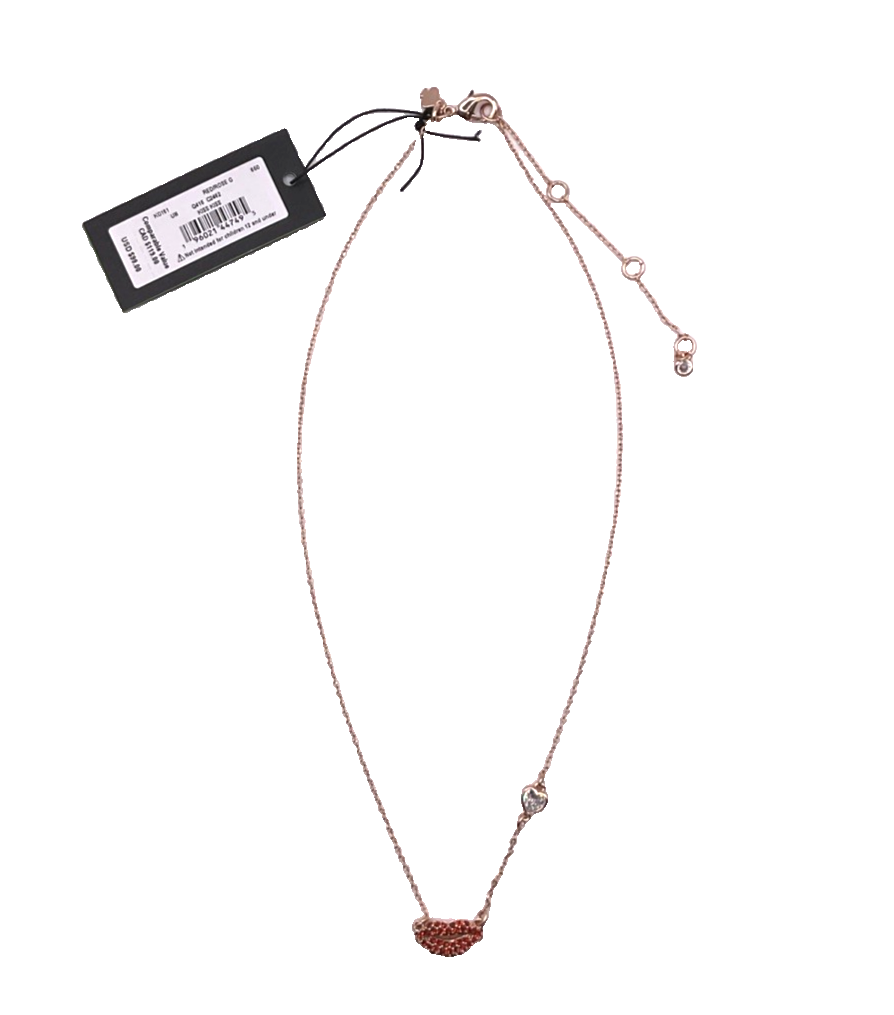 Brand New in Kate Spade Packaging Kate Spade New York Women's Kiss Kiss Mini Pendant in Rose Gold and Red The finishing touch to the outfit. And the reason for all the oohs and aahs. This gorgeous red lip necklace is sure to make her smile. Great gift for loved ones, especially during the Christmas holiday season, Mother's Day, and Valentine's Day. Chain length: 16 + 3" extender Materials: Cubic Zirconia, Glass Base Metal: Plated Metal Lobster Claw Closure