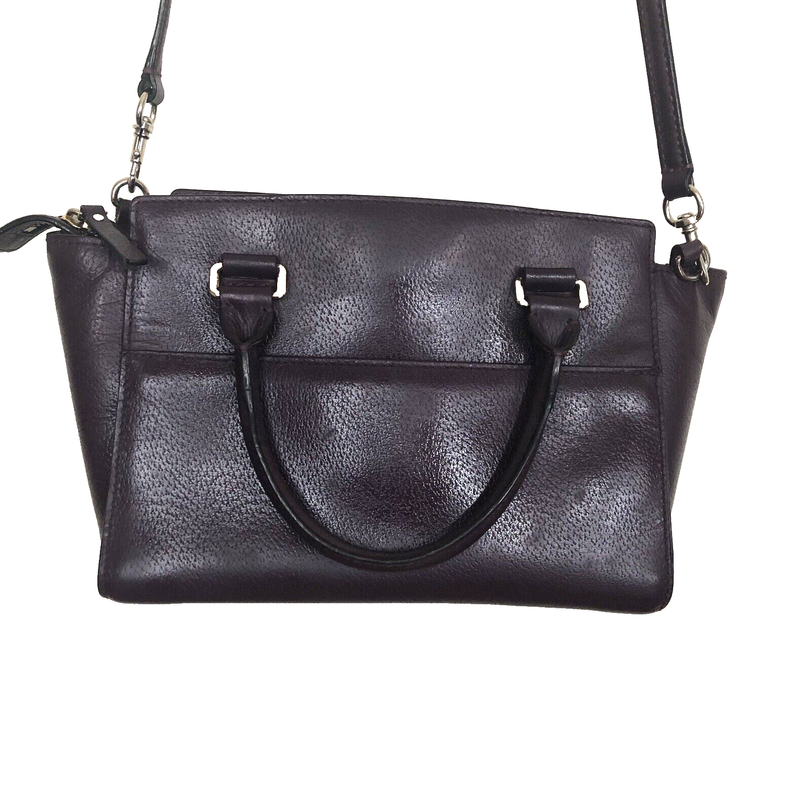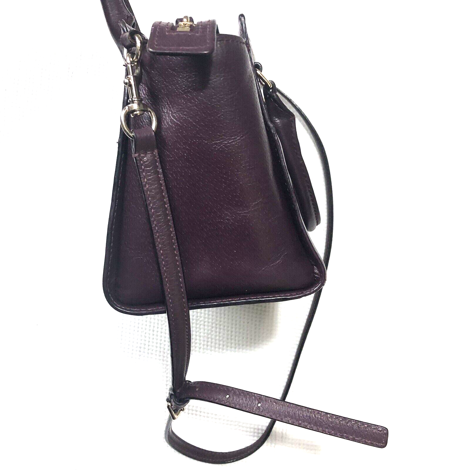 The Kate Spade New York Handbag Tote/Crossbody in deep plum features zip top handles and a strap, making it a versatile and stylish accessory for women. The medium-sized bag has a rectangular shape with a pebbled finish and gold hardware accents. The leather exterior is complemented by a mauve fabric lining, while the adjustable cross-body strap adds convenience and functionality. Perfect for everyday use or special occasions, this designer handbag exudes a preppy and city-inspired vibe.