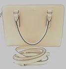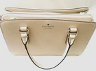 Description: The Kate Spade New York Mulberry Street Lise Satchel in Milk White Pebbled Leather is a stylish and versatile handbag for women. Made from high-quality leather with a pebbled finish, this rectangular satchel features a zip closure, gold plated hardware accents, and a detachable white leather handle/strap. The interior is lined with ivory fabric and offers plenty of space with dimensions of 11.5 inches in width, 8 inches in height, and 4.5 inches in depth. The classic design and timeless appeal make this satchel a perfect accessory for any outfit or occasion. No tags, new.