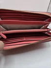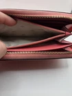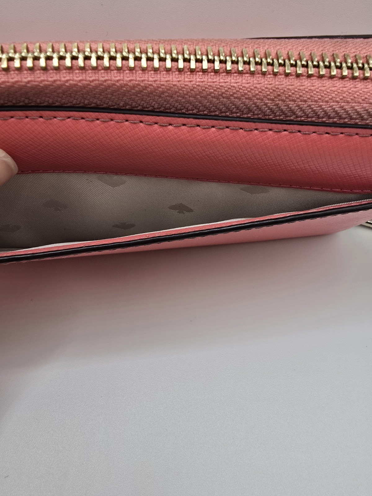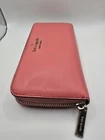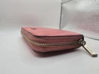 The Kate Spade New York Wallet is a stylish and practical accessory for women. Made from saffiano leather in a vibrant pink color, this zip-around wallet features a solid pattern with delicate logo accents. The wallet is designed with multiple credit card slots, making it convenient for keeping your essentials organized and secure. With its sleek design and quality material, this wallet is a perfect choice for any fashion-forward woman looking for a chic and functional accessory.